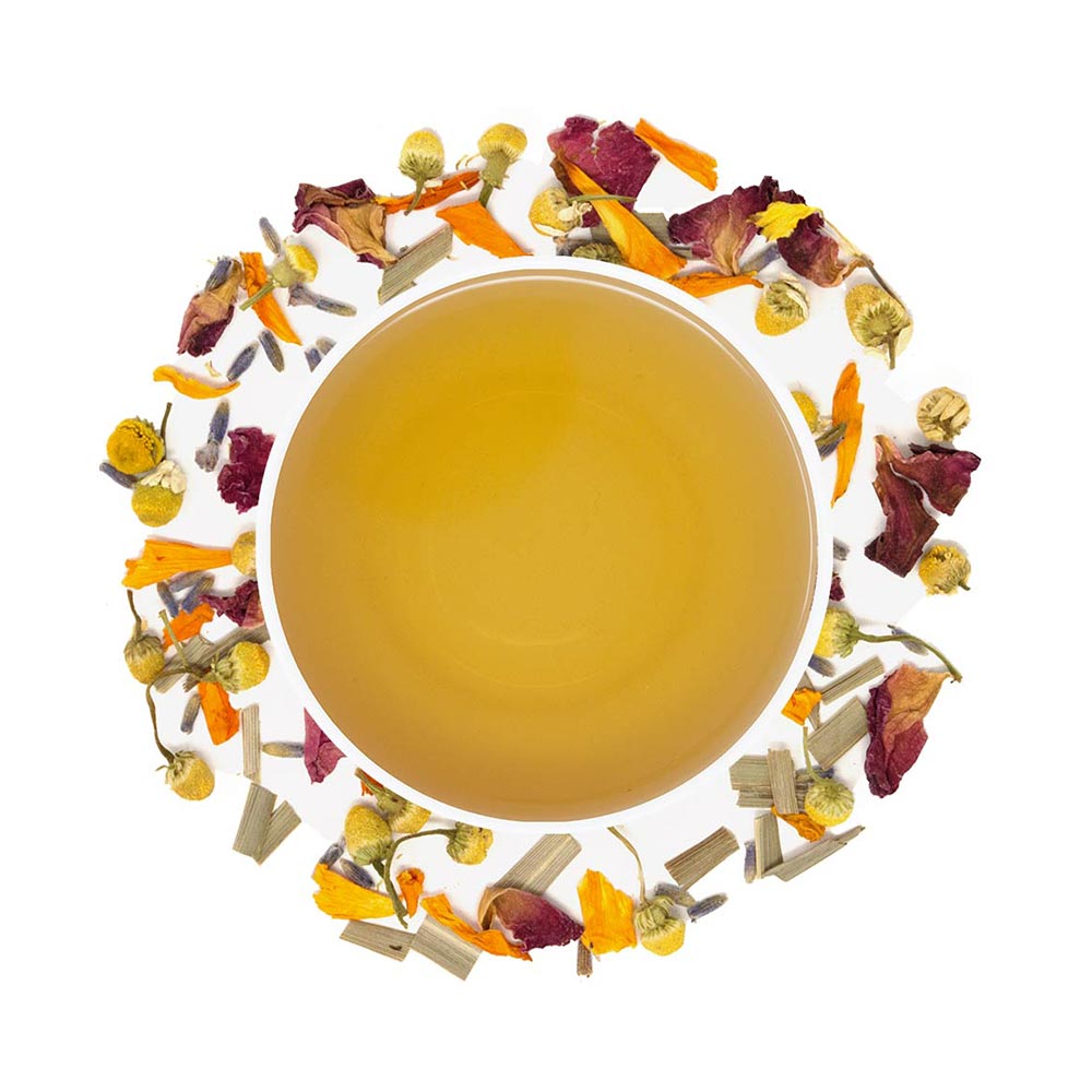 The leaves bear a refreshing floral aroma of rose and lavender with a mix of sweet chamomile along with citrusy notes. The appearance of the blend is a treat for the eye with a mix of chamomile, lemongrass, lavender, rose and marigold.