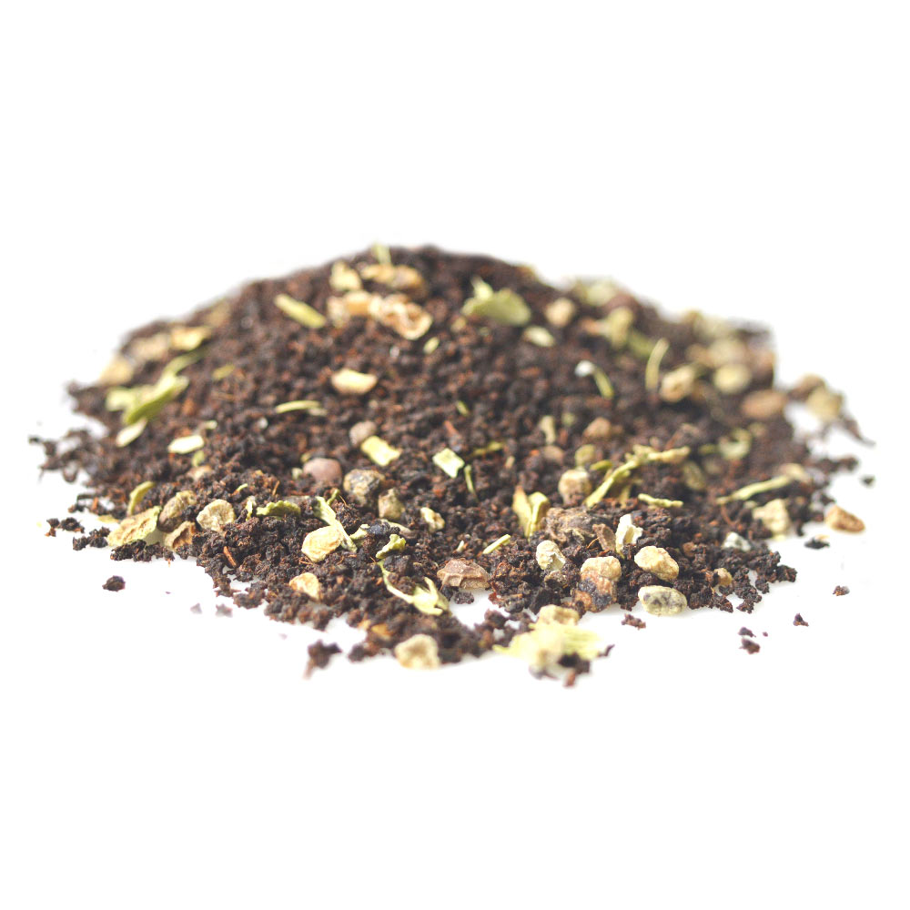 The leaf is dark brown CTC with rich cardamom flavour and appearance