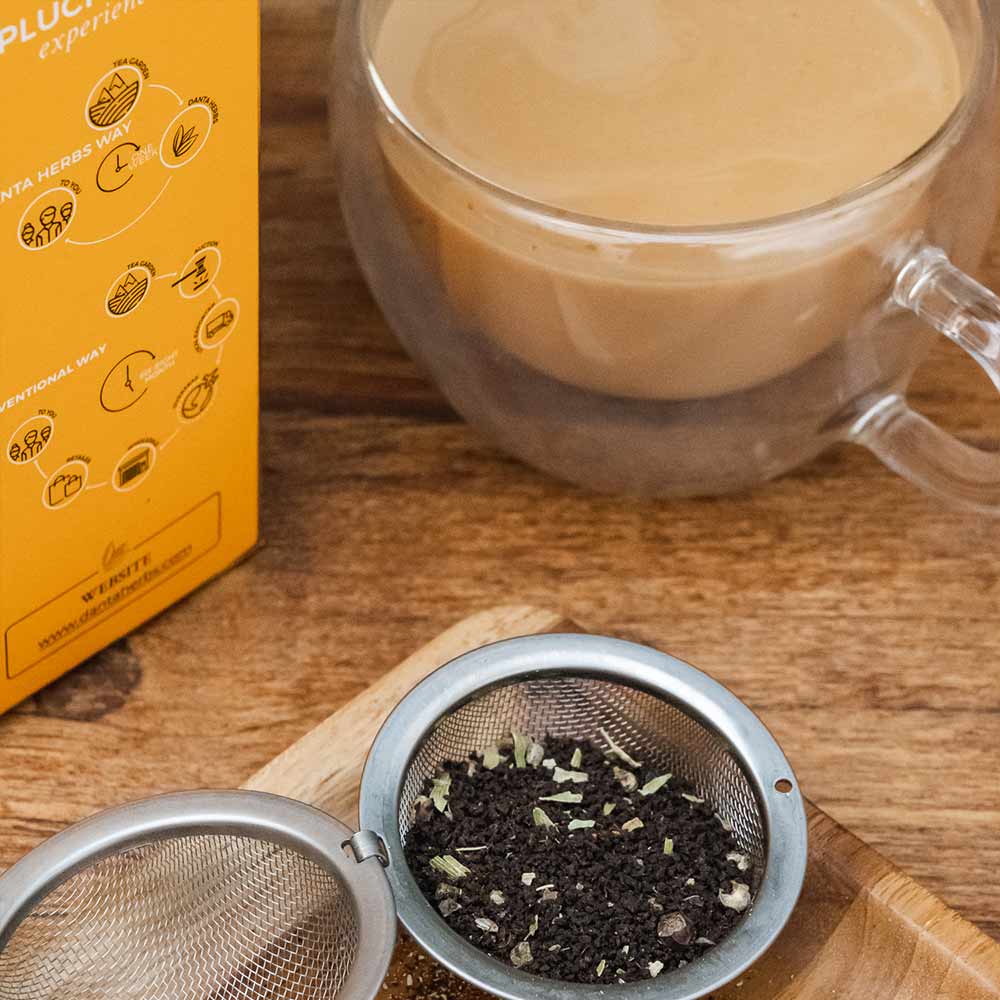 The aroma boasts of bold Assam leaf with a distinct cardamom note with a spicy hint.