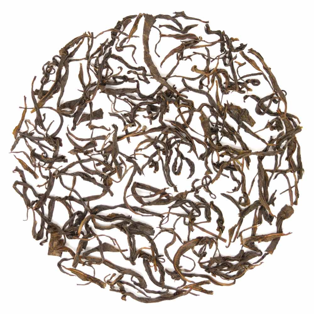 The leaves are full, dark olive green, slightly coppery in appearance which is the first flush feature. It has a slight floral aroma.