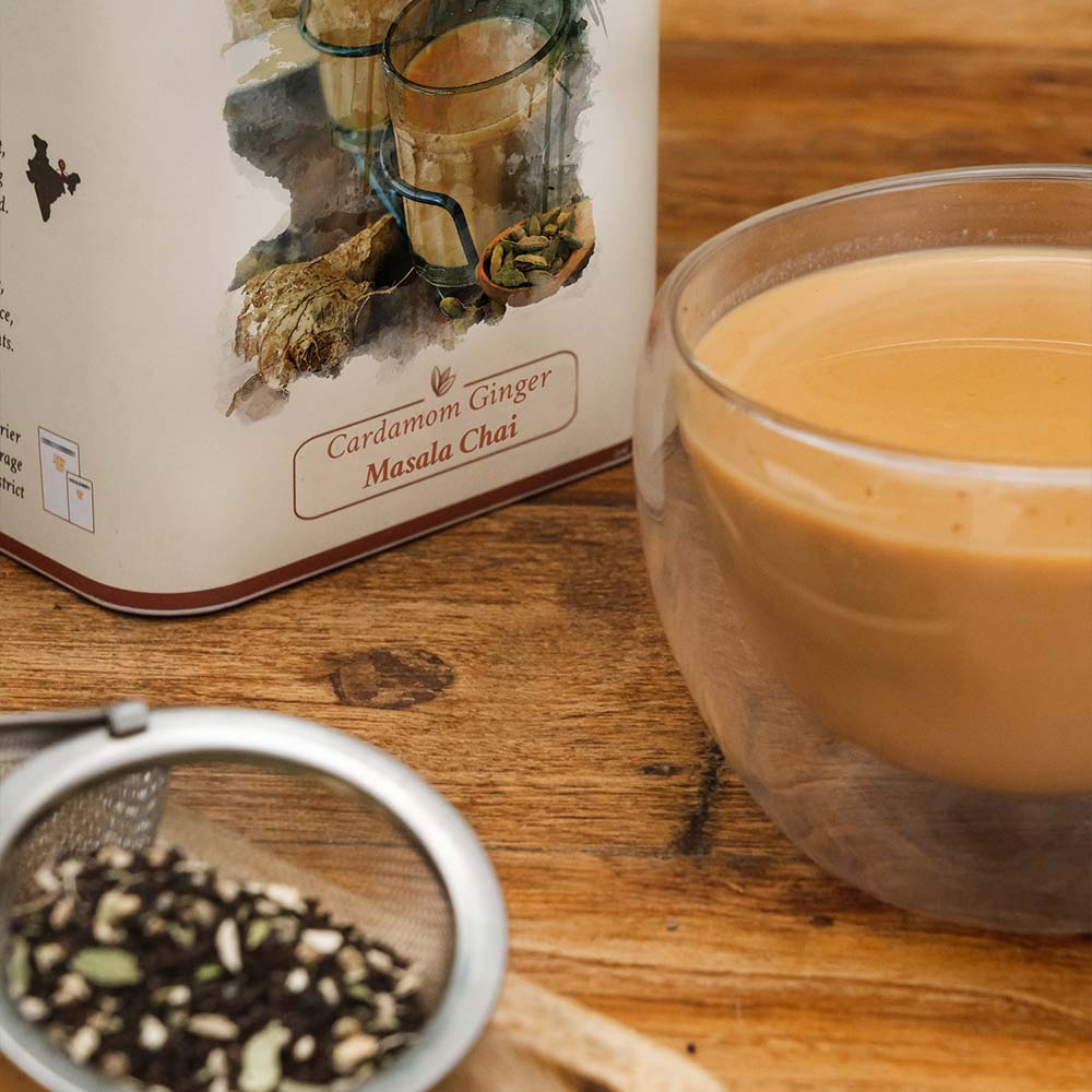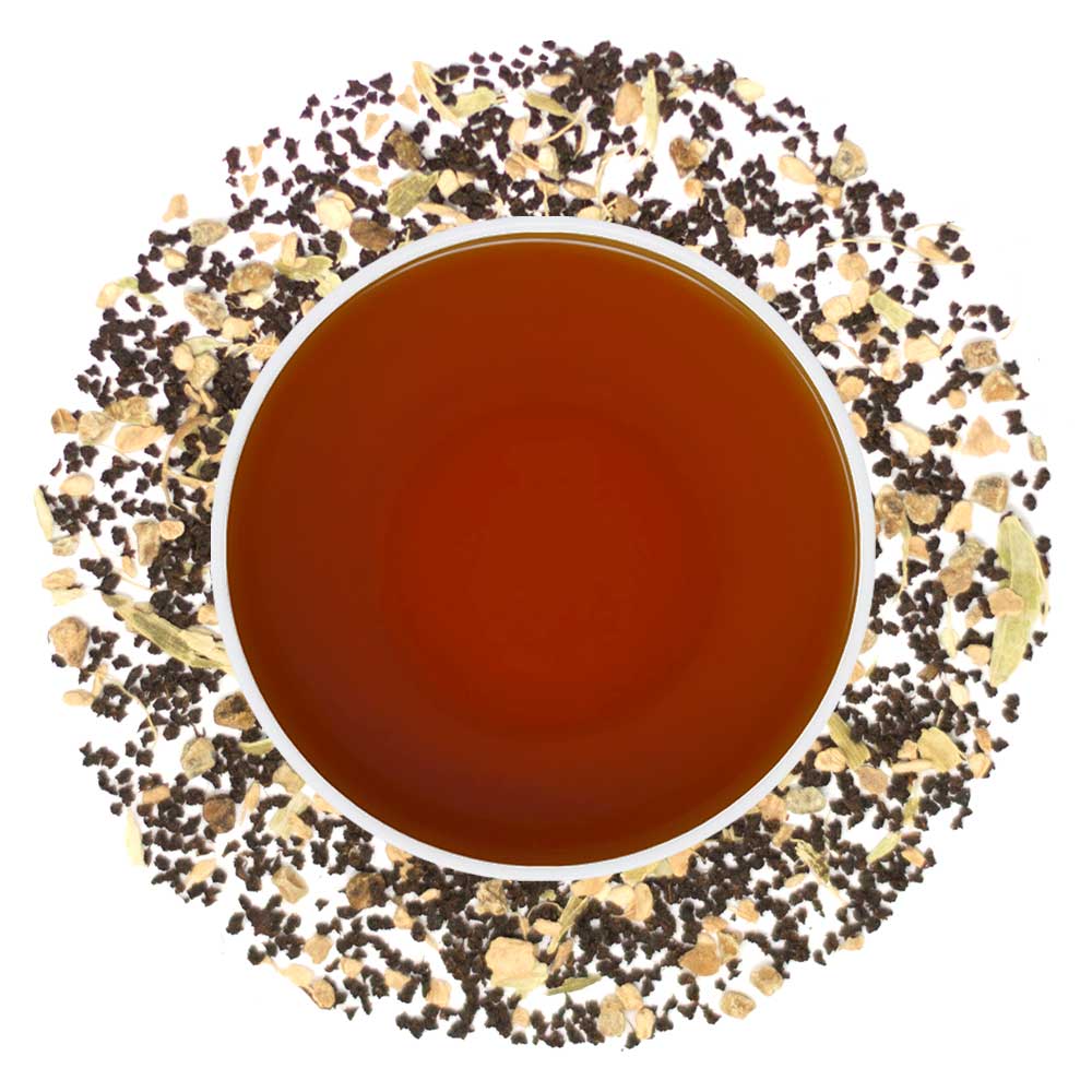The aroma is a perfectly balanced spicy aroma of cardamom, ginger with a robust Assam Black Tea note.