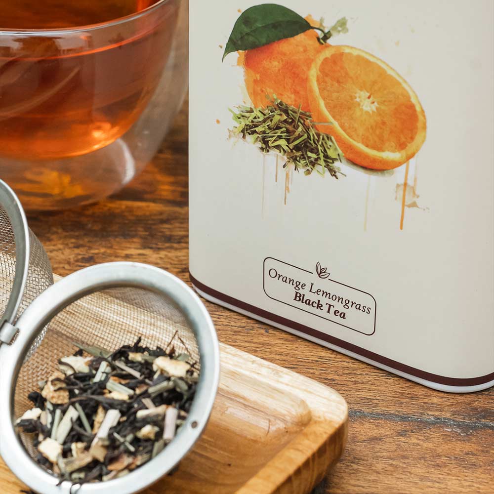 Black Tea, Orange Peel, Lemongrass, Bergamot oil