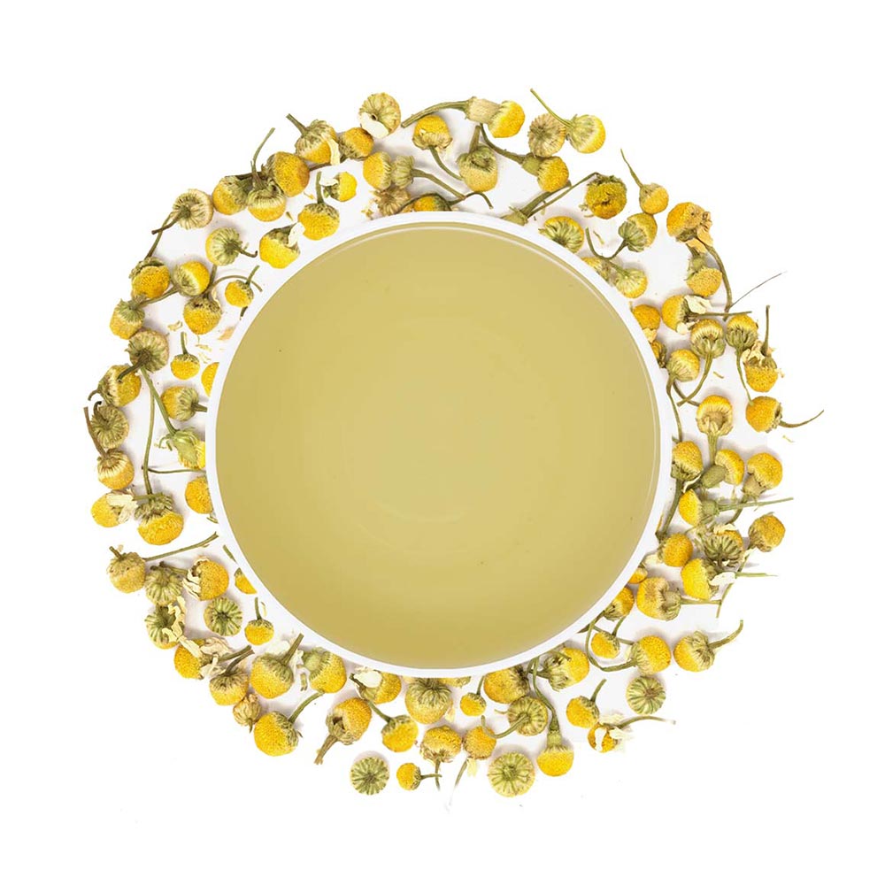 The leaves are fresh and bear strong sweet floral aroma of chamomile consisting mostly of chamomile buds which is a mix of yellow bud with a green base presentation.