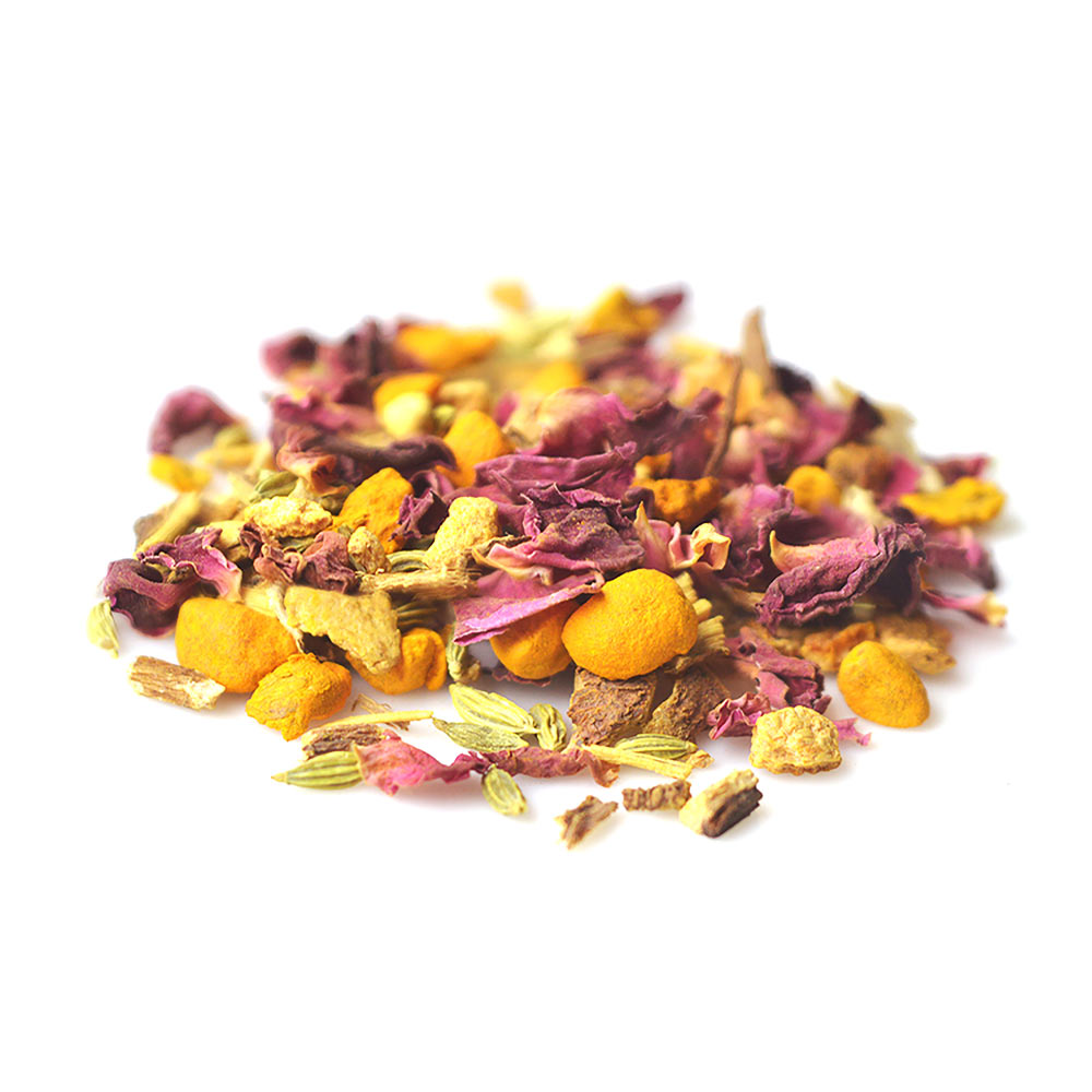 Dandelion roots, Turmeric, Orange peel, Fennel seeds, Liquorice, Red rose
